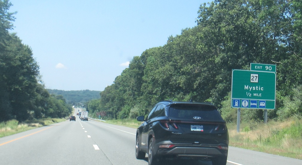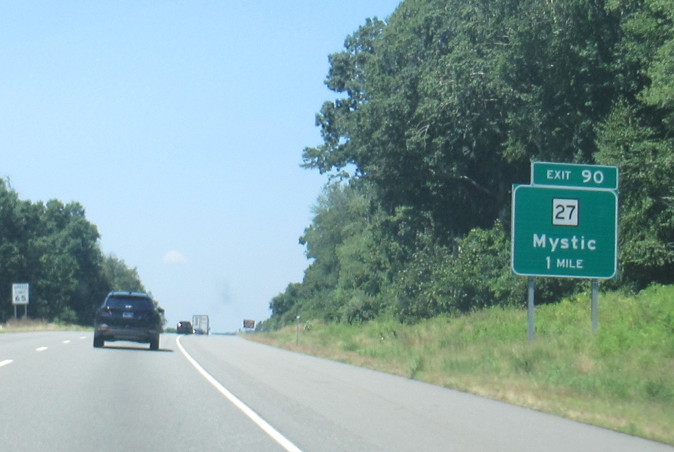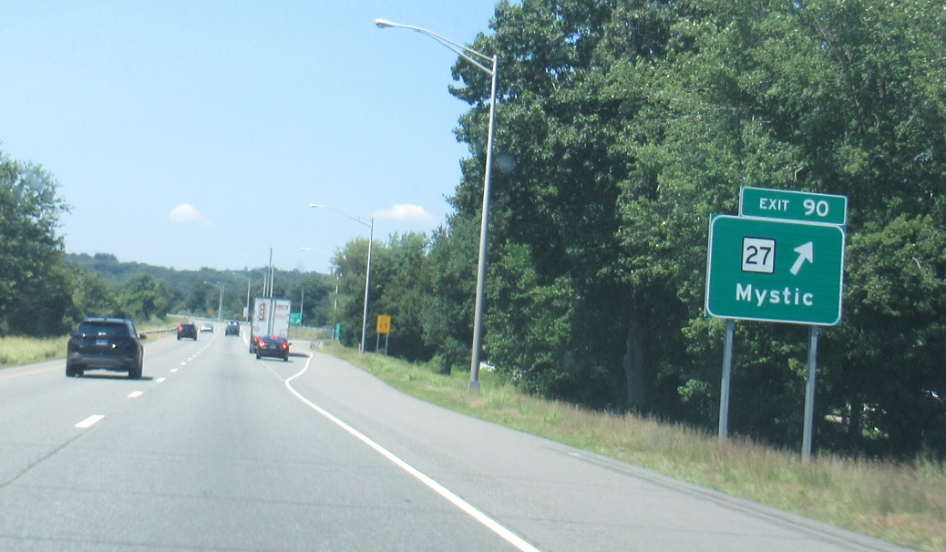 Exit for CT 27, which heads south to Mystic. SR 654 provides the ramp from CT 27 to I-95 north.