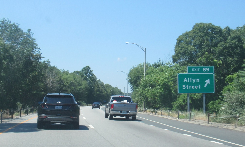 A mile later, we’ll approach Allyn St, which is SR 614. Exit for SR 614 north and south.