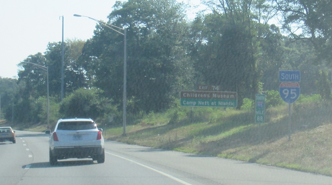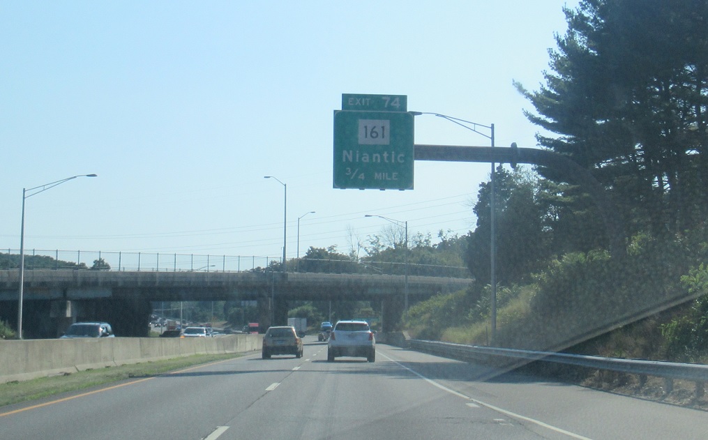 Exit for CT 161, which heads to Niantic. The connection to CT 161 for I-95 south is via Flanders Road, which is not on the state system. I-95 north directly touches 161.