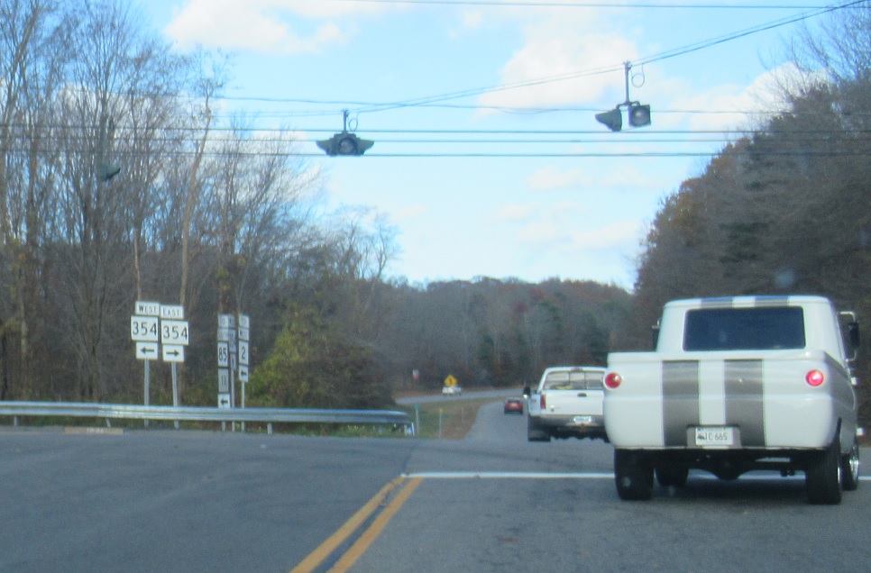 SR 637 ends as we approach CT 2 and CT 354. Stay straight for CT 2 east. Turn left for 354 west and right for 354 east.