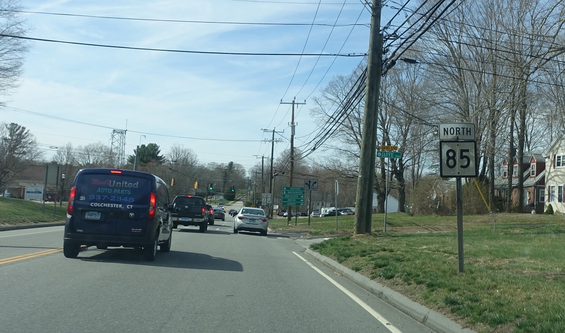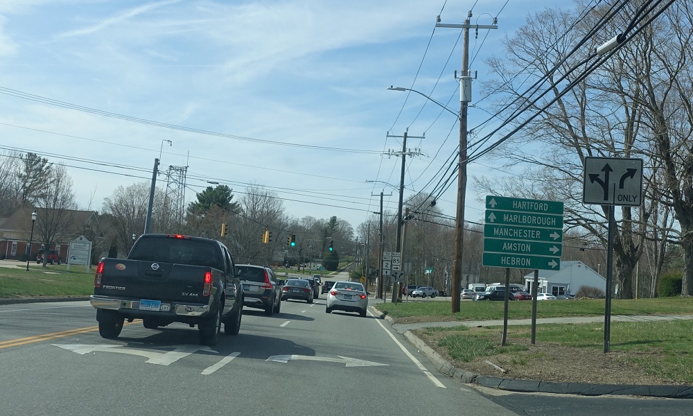 At the light, we’ll approach SR 615, which is a quick connector along old CT 2 to CT 2. Follow 615 to 2 and Hartford/Marlborough. Take 85 north to Manchester, Amston, and Hebron.
