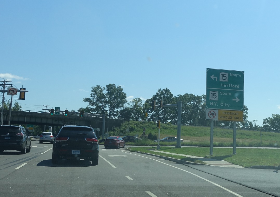 Turn right for the southbound Wilbur Cross/CT 15 to New York City.