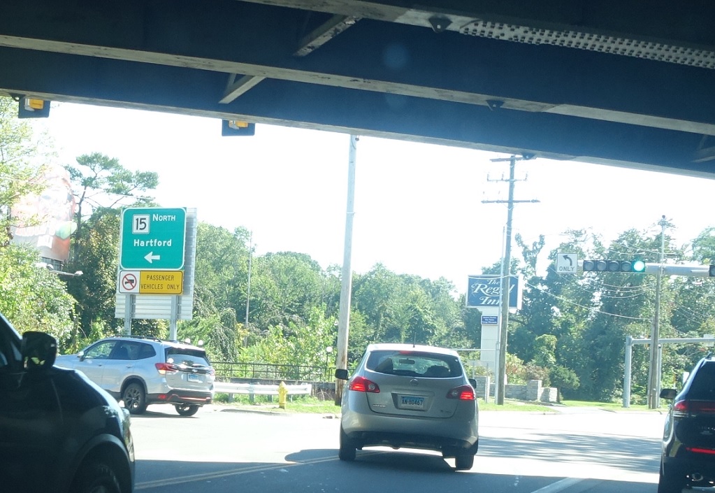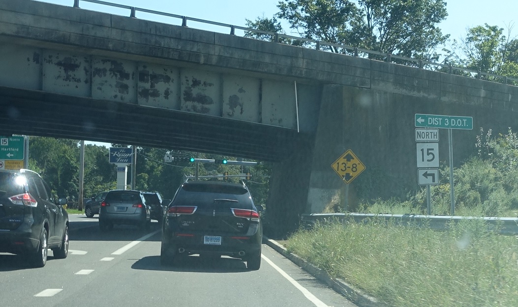 One last reassurance shield as we approach CT 63. This is one big junction between 15 and 63, with both routes sharing the onramp to CT 15 south.