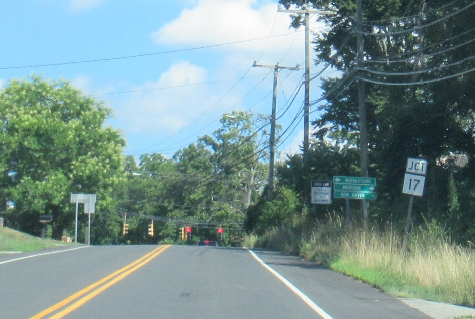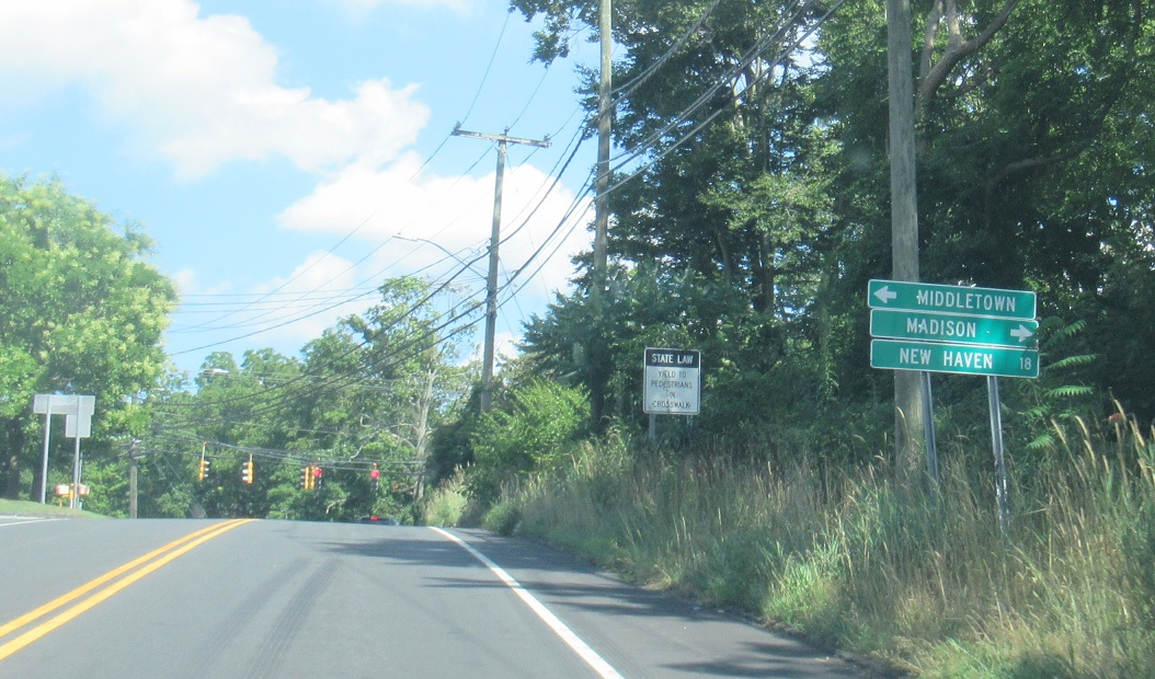 Turn right for 17 south to Madison and New Haven. Turn left for 17 north to Middletown. The “18” distance to New Haven should be a right arrow.