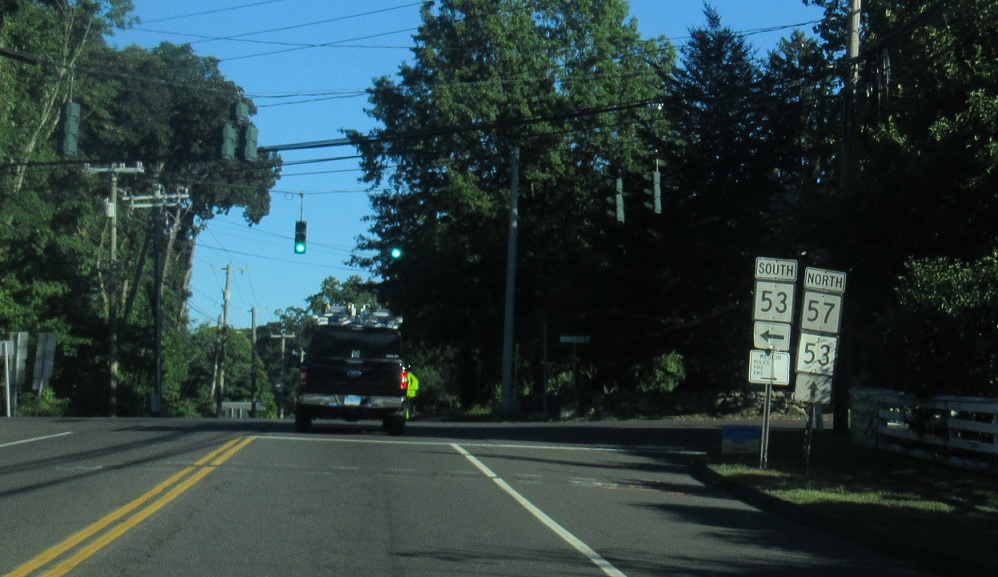 CT 53 north will join CT 57 north for .8 miles. Turn left for 53 south.