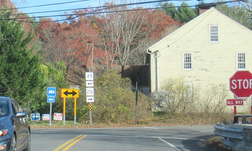 Turn left for CT 49 north. Turn right for CT 216 east back towards I-95 and Rhode Island.