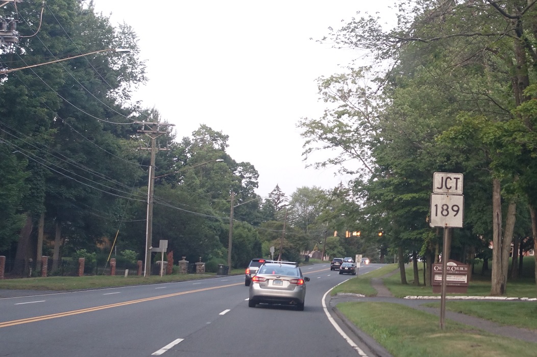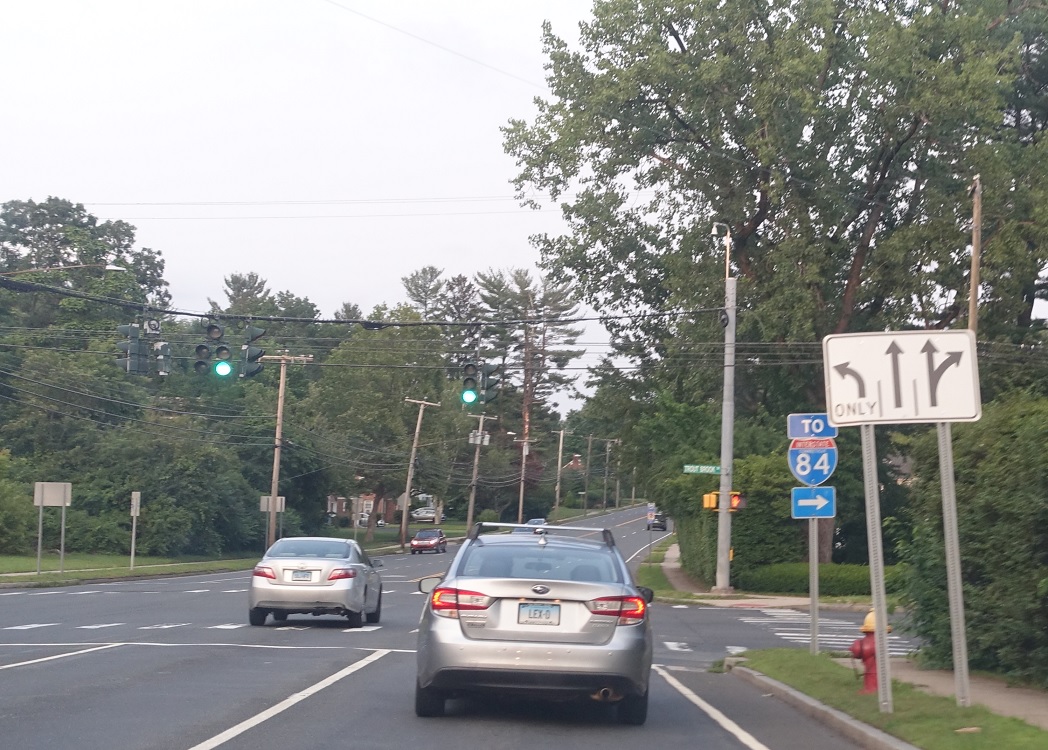 Welcome to Hartford! Turn left at the next light for CT 189 north, which is not signed beyond the previous junction sign for some reason.