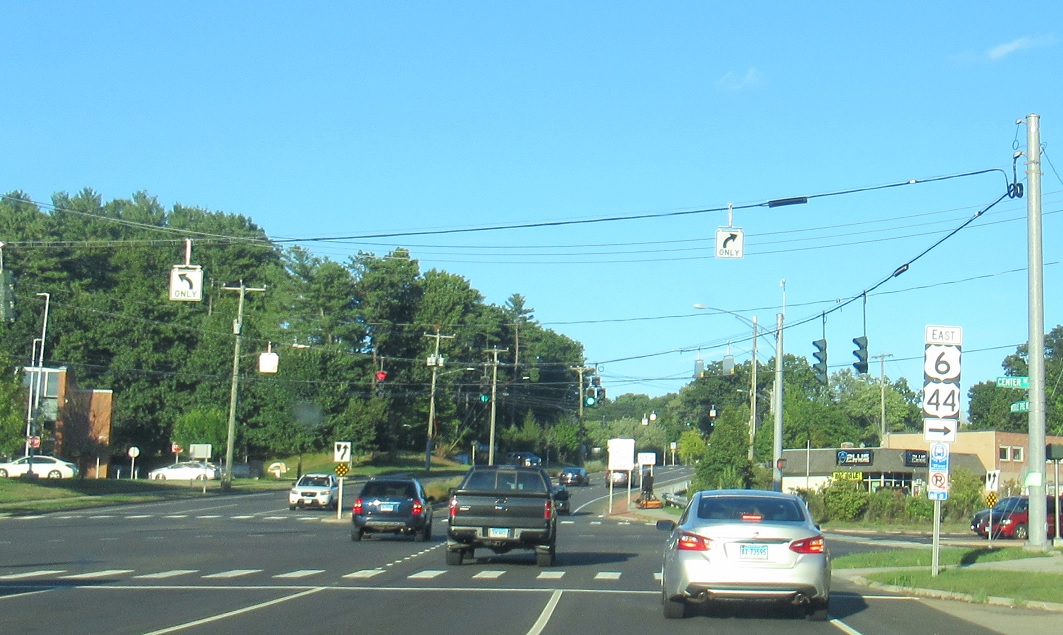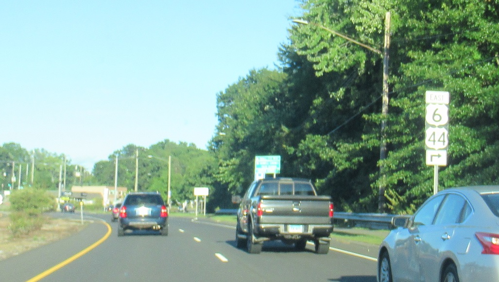 Reassurance shield as US 44 joins US 6, an arrangement that will carry through to Manchester.