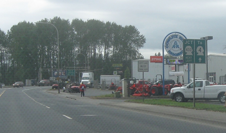 JCT SR 433, turn left to head into Oregon or stay straight to get to SR 4.