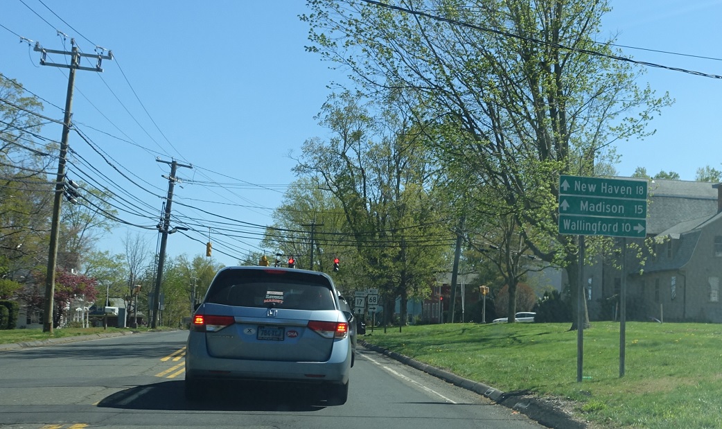 A quarter mile after CT 147, we’ll approach CT 68. Follow 68 west to Wallingford. Stay on 17 south for New Haven and Madison.