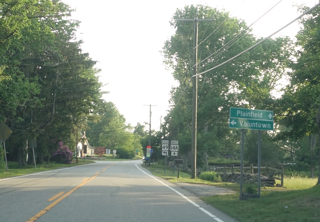 Stay on 14A west for Plainfield. Follow 49 south to Sterling.
