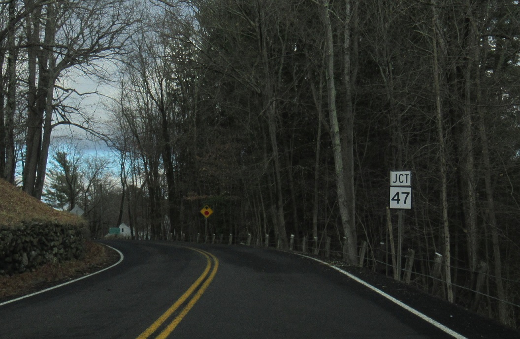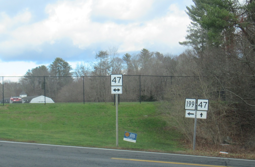 Turn right for CT 47 south and left for CT 47 north. CT 199 ends. The signage on northbound CT 47 appears to have been turned 90 degrees.