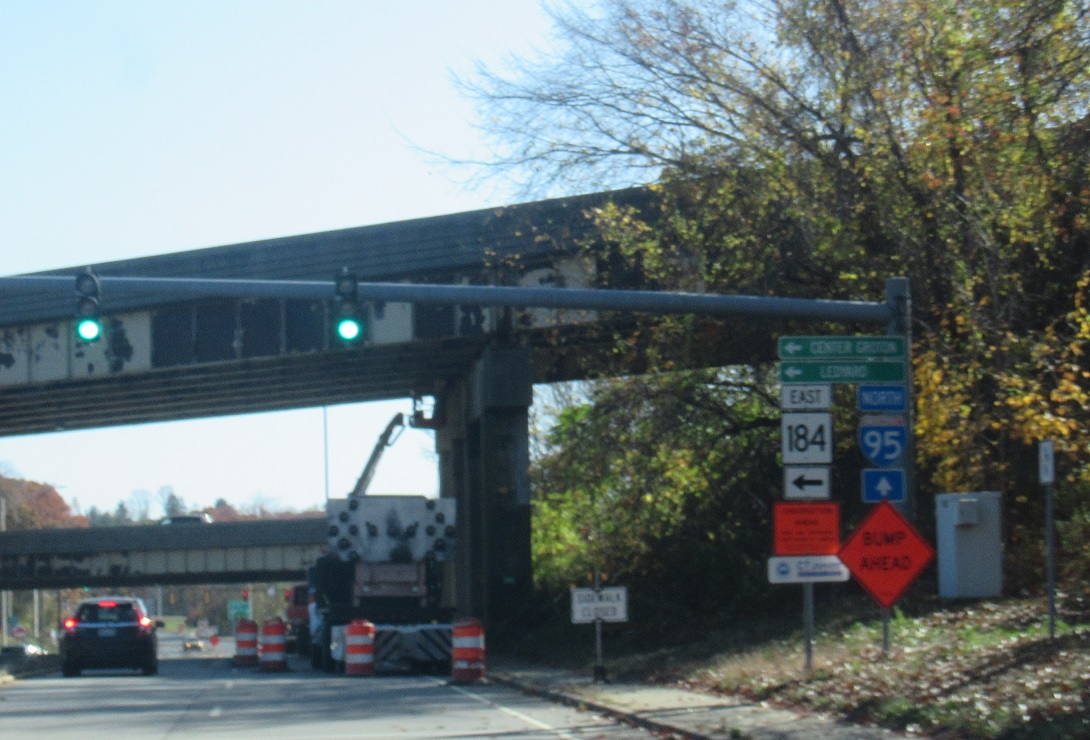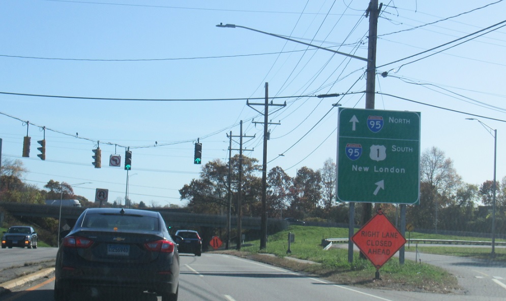 As we enter Groton, we’ll approach I-95, as well as US 1, CT 184, and the connecting SR 900. Keep right for 95/1 south into New London.