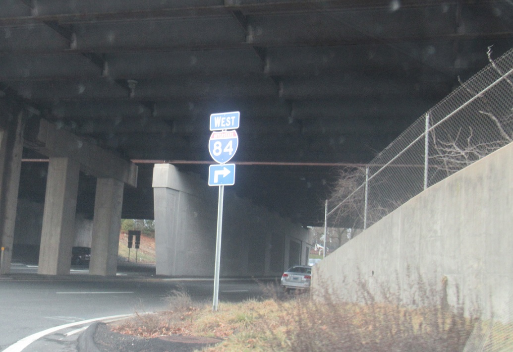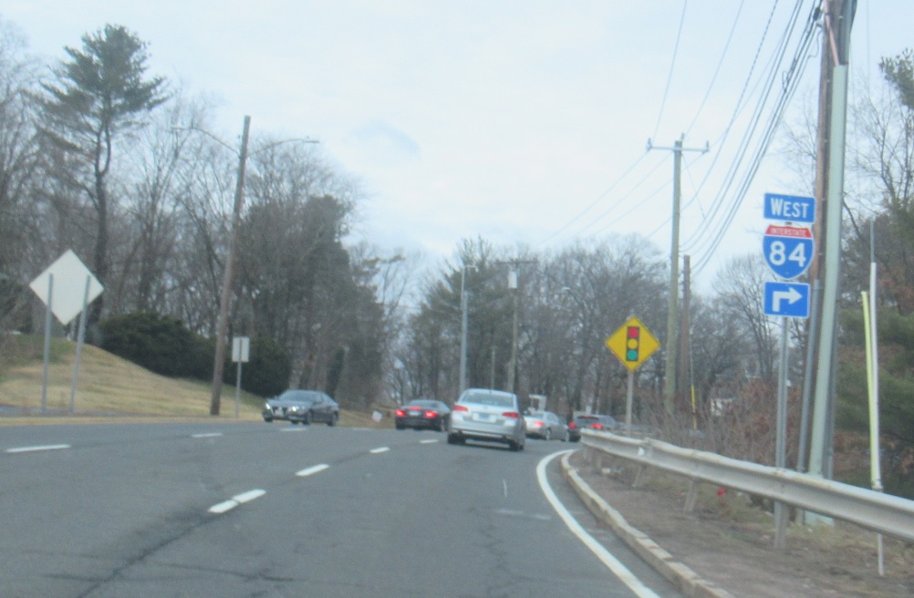 Immediately as SR 535 begins, we’re advised to turn right for I-84 west. SR 535 facilitates the movement between CT 71 and I-84/US 6 west.