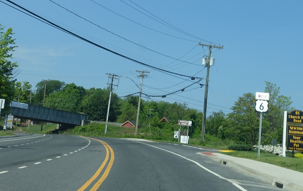 Reassurance shield as US 6 splits from I-84 and we head into Newtown center.