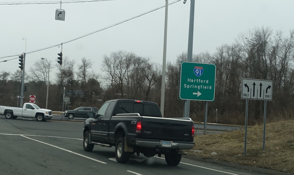 Turn right for ramps to I-91 north and south.