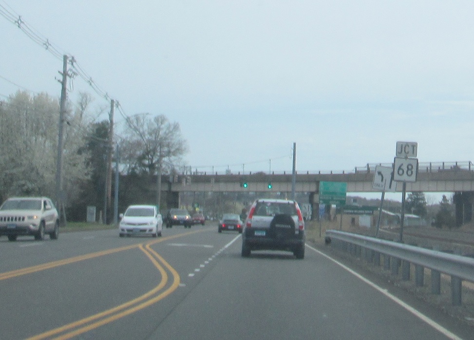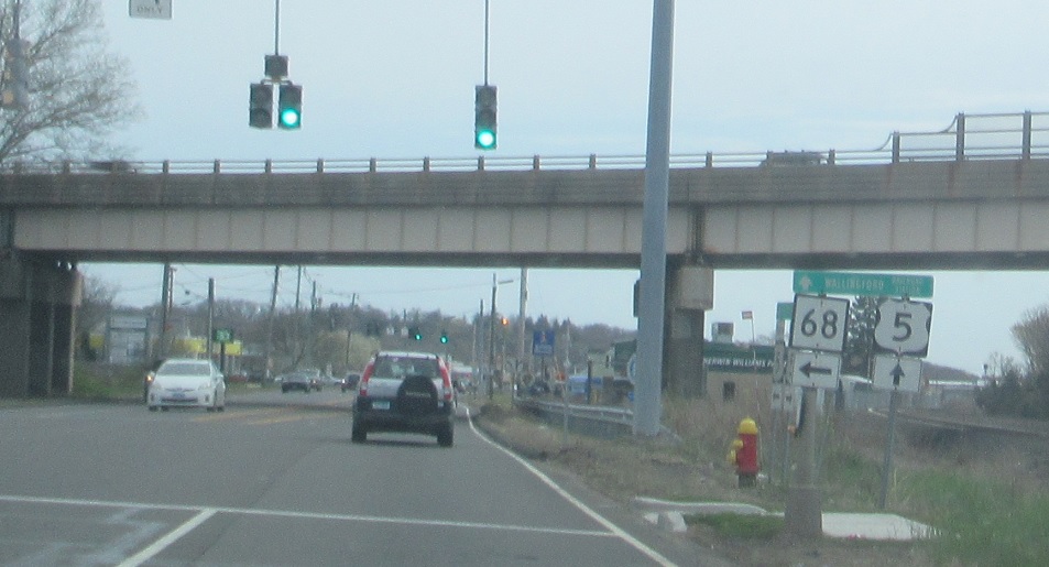 Turn left for the ramp up to CT 68. Stay straight to stay on US 5 south to downtown Wallingford.