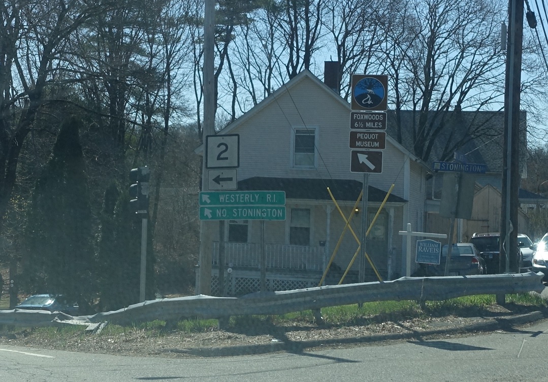 After CT 165, keep left to merge onto Stonington Rd and follow CT 2 to Westerly, R.I.