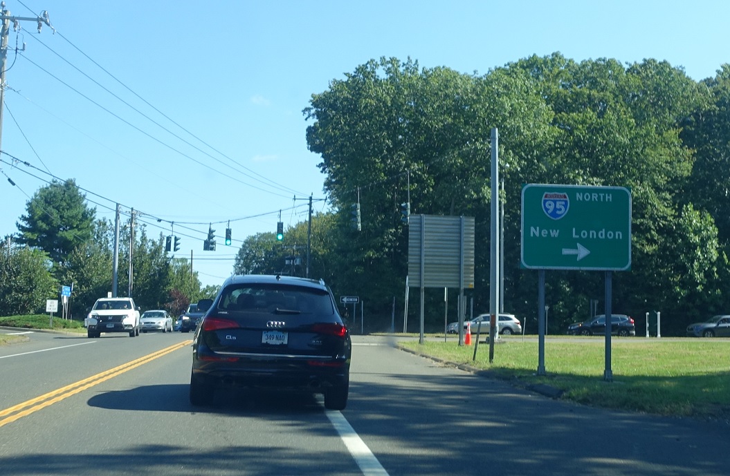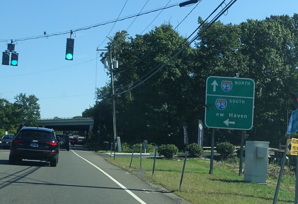 No reassurance shield after CT 22, and then a mile and a half later we’ll approach I-95. Turn left for I-95 south to New Haven.