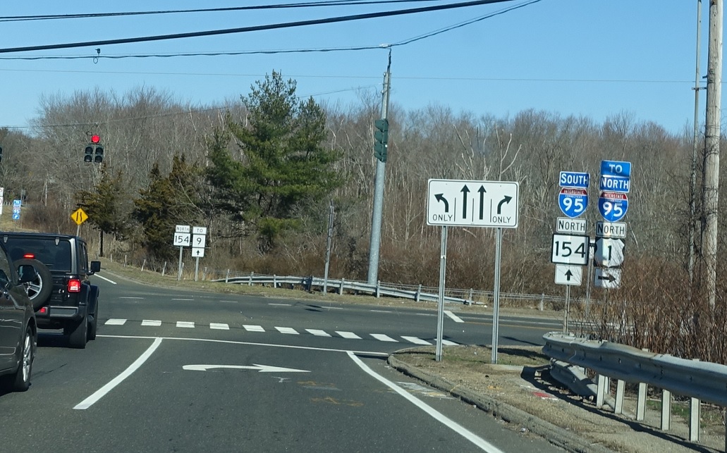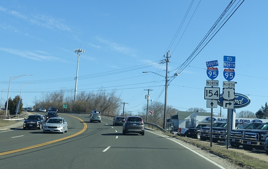 Turn right for 1 north to I-95 north. Stay straight for 154 north to I-95 south.