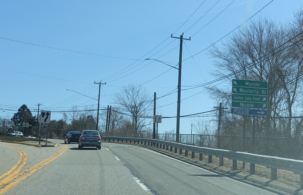 Stay on US 1 for Mystic and Westerly, R.I. Follow 215 east to Long Point and Noank.