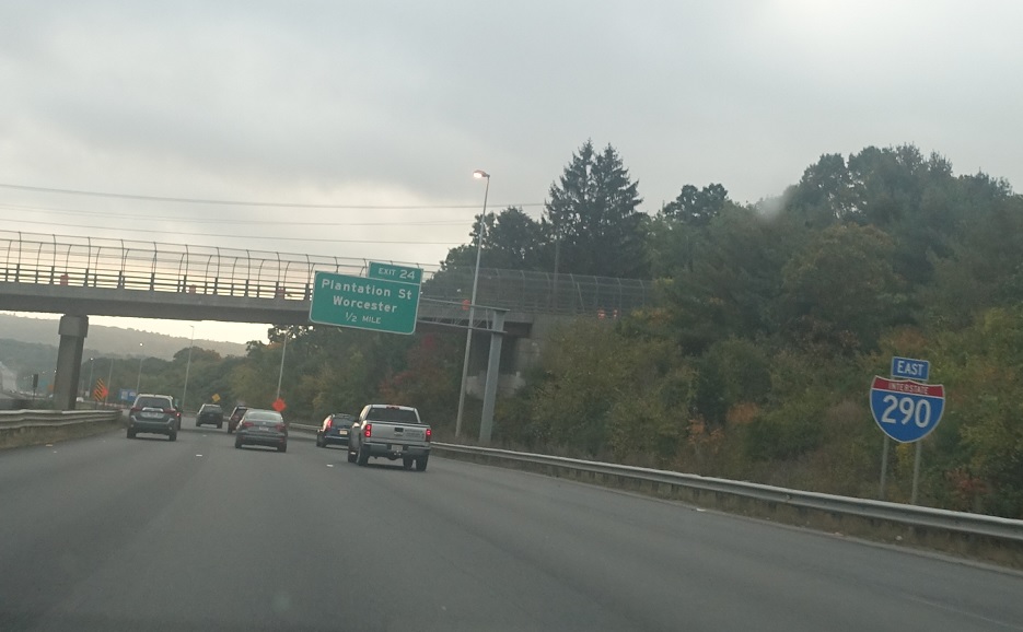 Reassurance shield as we cross over Plantation Street and head out of Worcester.
