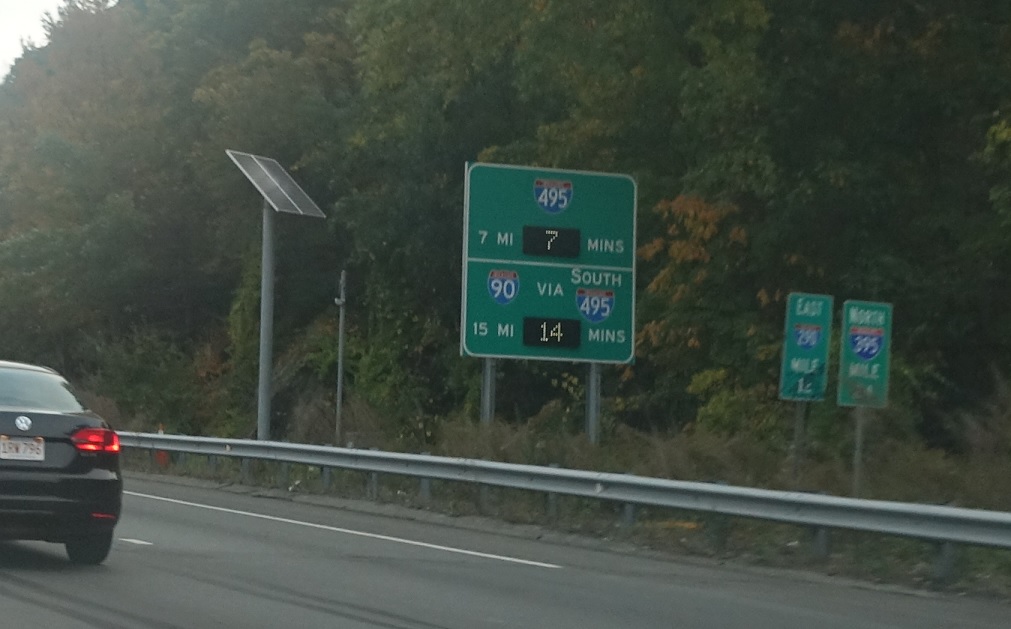 7 miles to I-495. 15 miles to the Pike via I-495 south as I-395 mileposts continue.