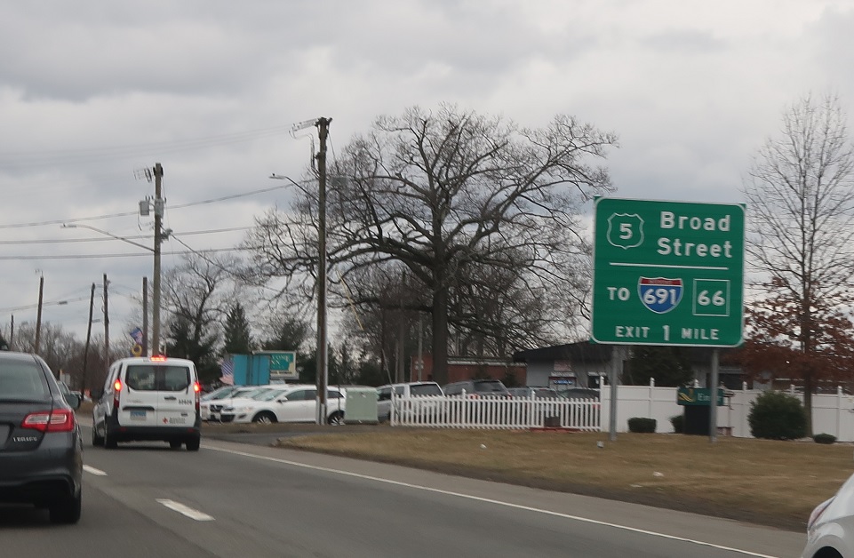 As we enter Meriden, we’re a mile from the US 5/CT 15 split. US 5 will provide the direct connection to I-691 and CT 66.
