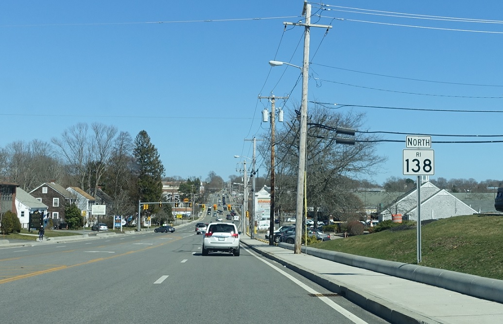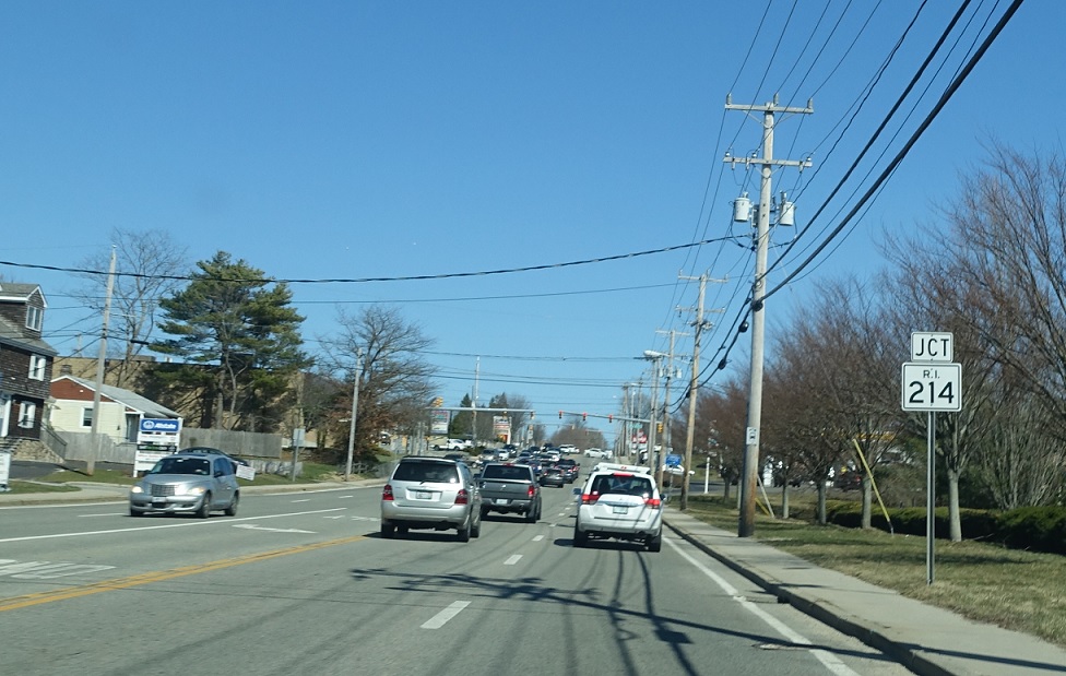 At the light, we’ll approach RI 214. Turn left for 214 north and right for 214 south.