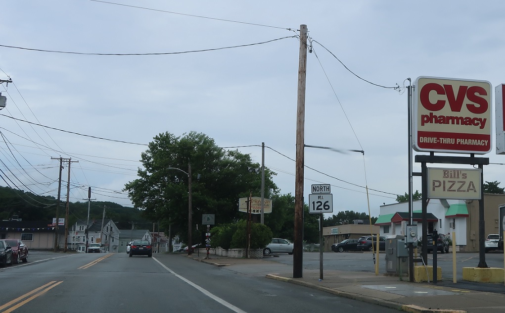 A few blocks later, we’ll enter Lincoln. Keep right for RI 126 north – or go straight to RI 123 and connect that way, which is definitely the southbound routing.