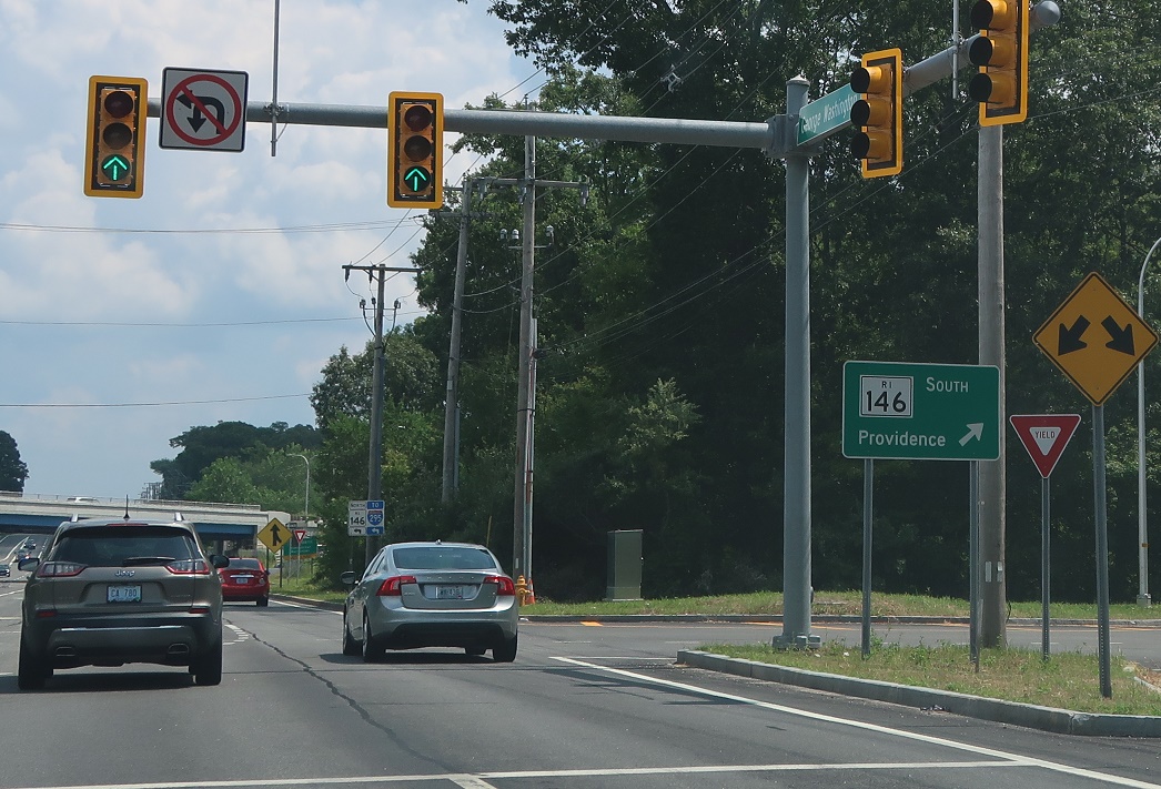 Exit right for RI 146 south to Providence, with a connection to RI 246.