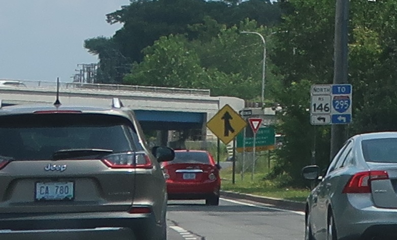 Turn left ahead for RI 146 north to I-295.