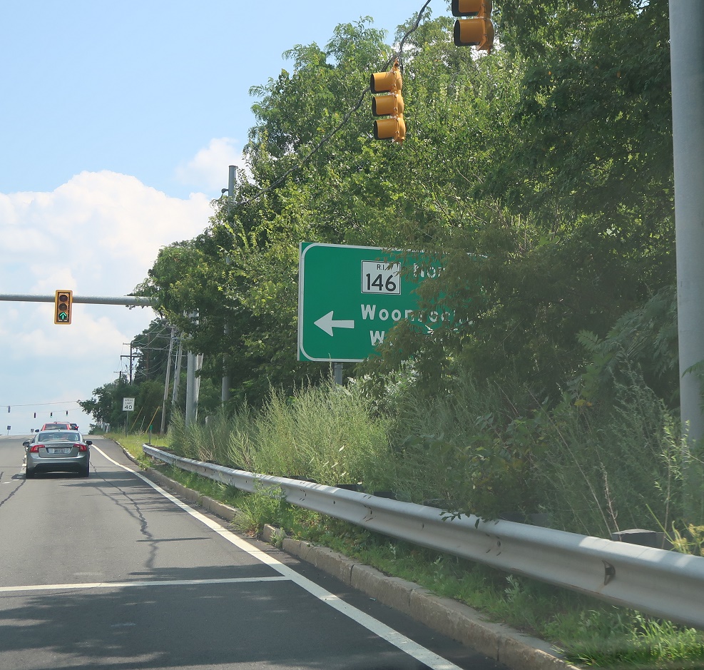 Exit left ahead for RI 146 north.