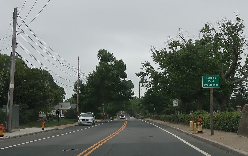 Reassurance shield a couple blocks later. In a few blocks, traffic from US 1A will join RI 114, and 1A and 114 will run concurrently down to the I-195 corridor.