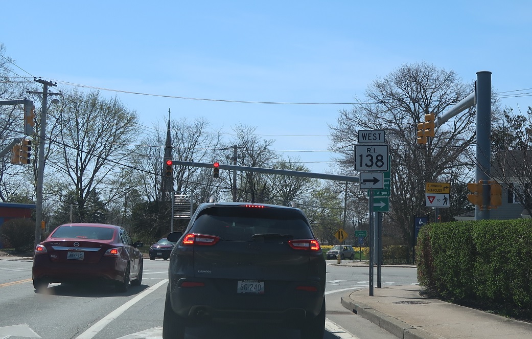 RI 114 ends. Turn right to stay on 138 west.
