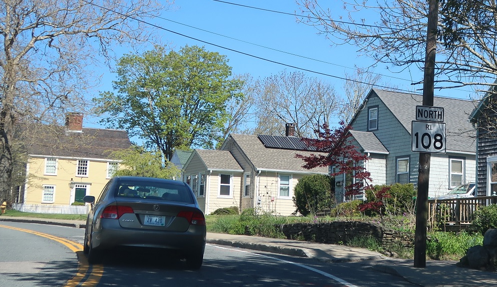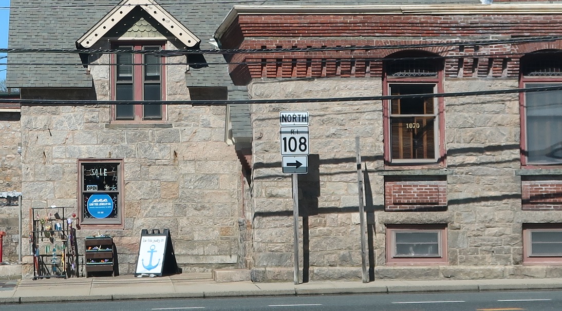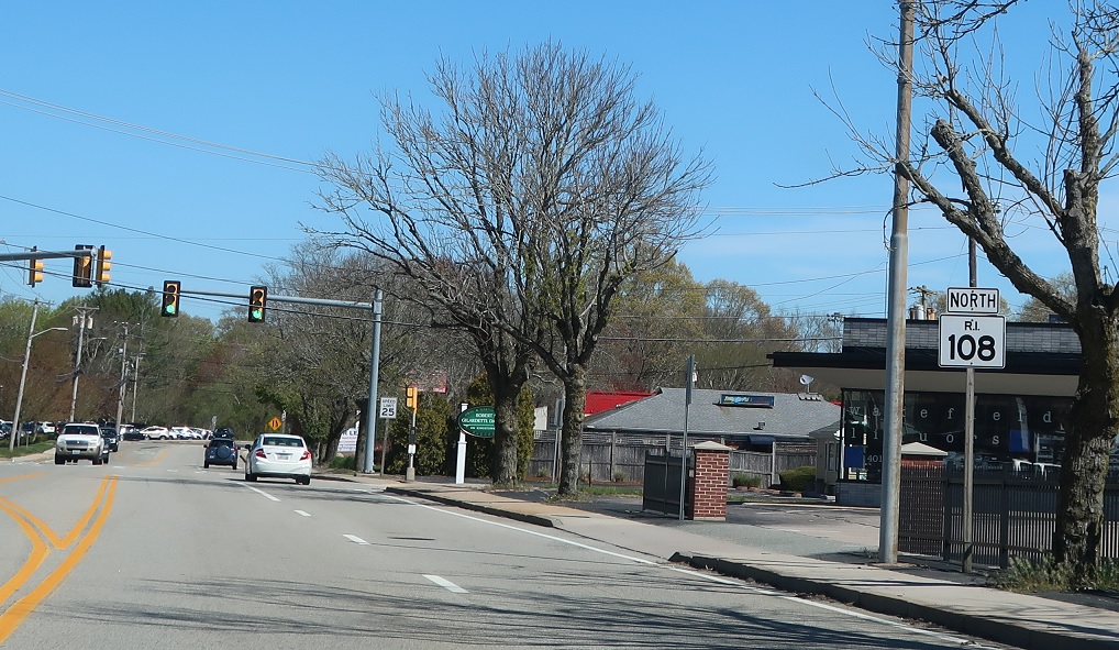 Several blocks later, RI 108 makes a right turn.