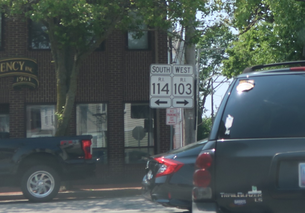 A few blocks later, we’ll approach RI 114. Turn left for 114 south. Turn right for 103 west, which joins 114 north up into Barrington.