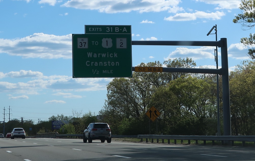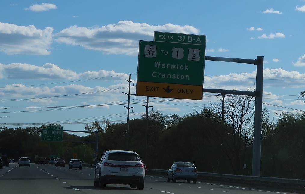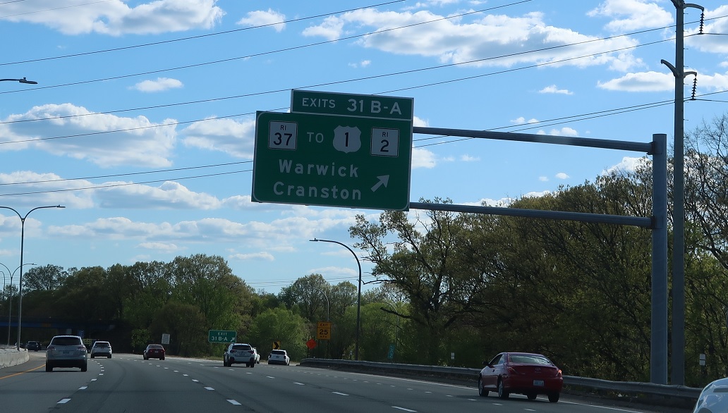 Exit for RI 37 with connections to US 1 and RI 2.