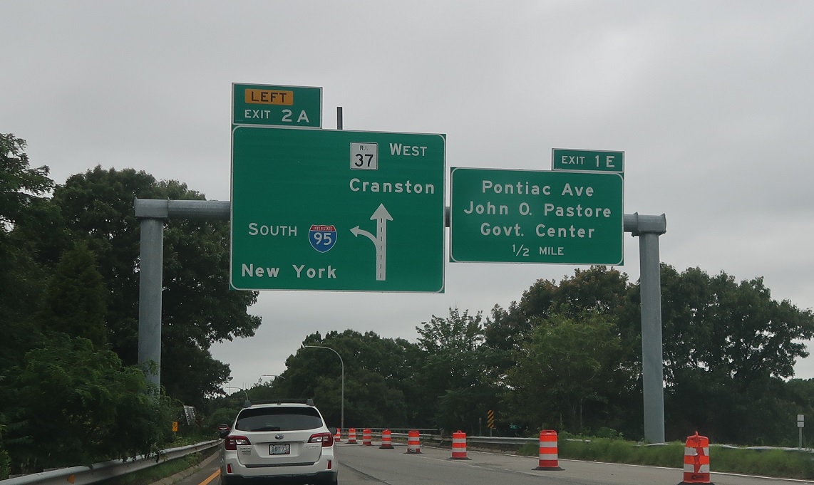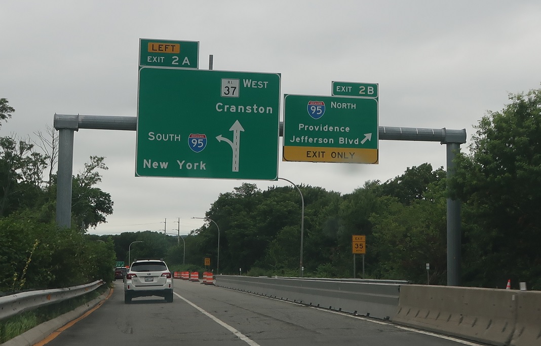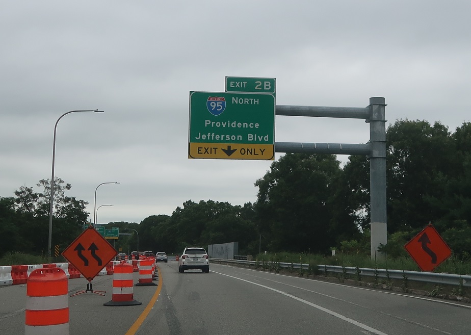 Exit for I-95 north to Providence with a ramp to Jefferson Blvd. Keep left ahead for I-95 south.