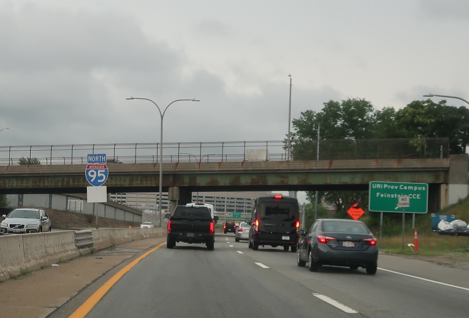 We’ve exited to connect to US 1- but keep far left for I-95 north and middle left for I-95 south/US 6 east to I-195.