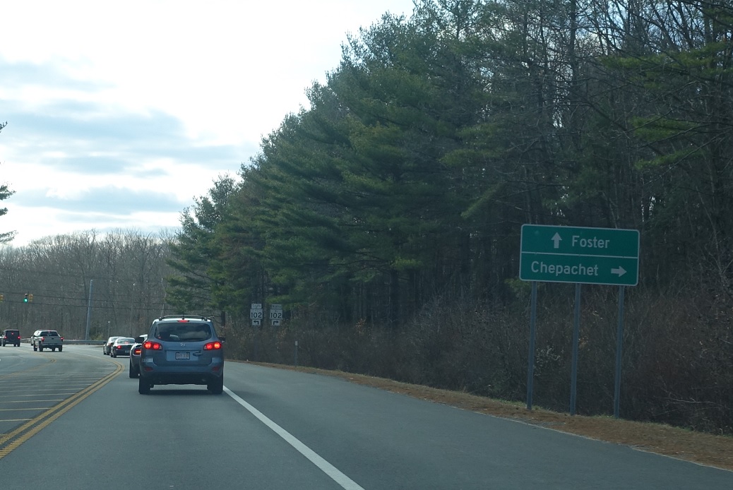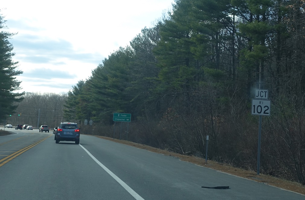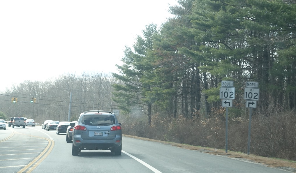 Turn left for RI 102 south. Turn right for 102 north. Stay straight to stay on US 6 west.