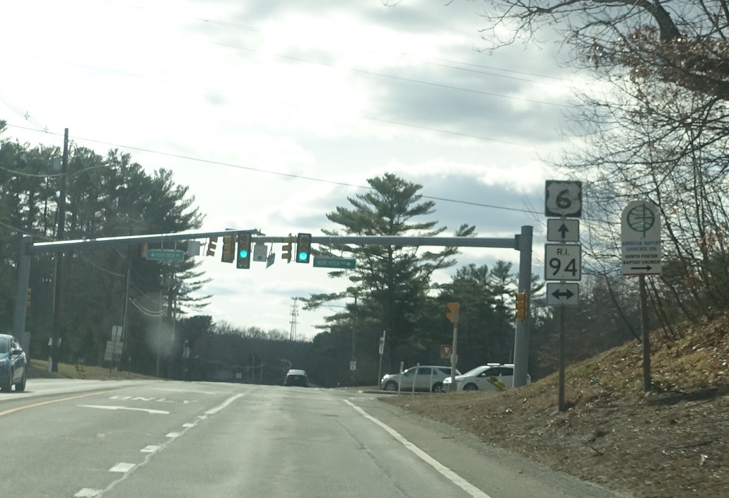As we enter Foster, we’ll approach RI 94. Stay straight for US 6 west to Connecticut. Follow 94 north to Glocester and 94 south to Foster Center.