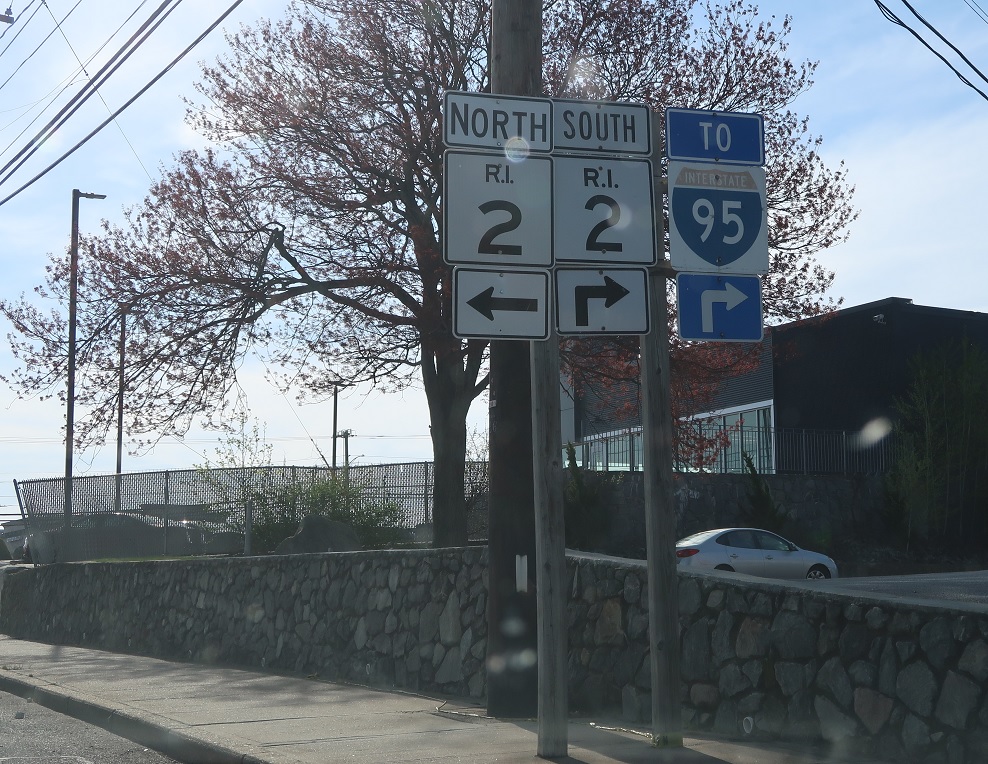 Turn left for RI 2 south and left for RI 2 north – though now we’re advised to follow 2 north to I-95. RI 3 ends.