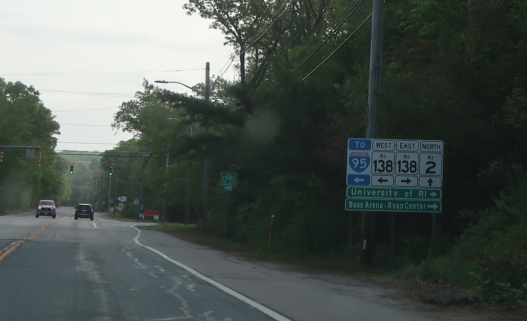 Turn right for RI 138 east towards URI. Turn left for RI 138 west to I-95. Stay straight to stay on RI 2 north.