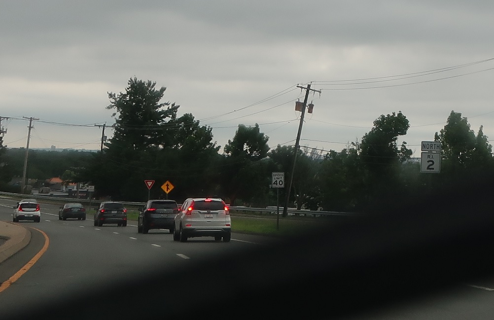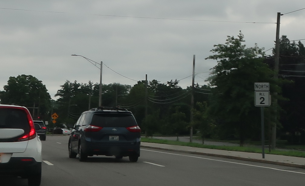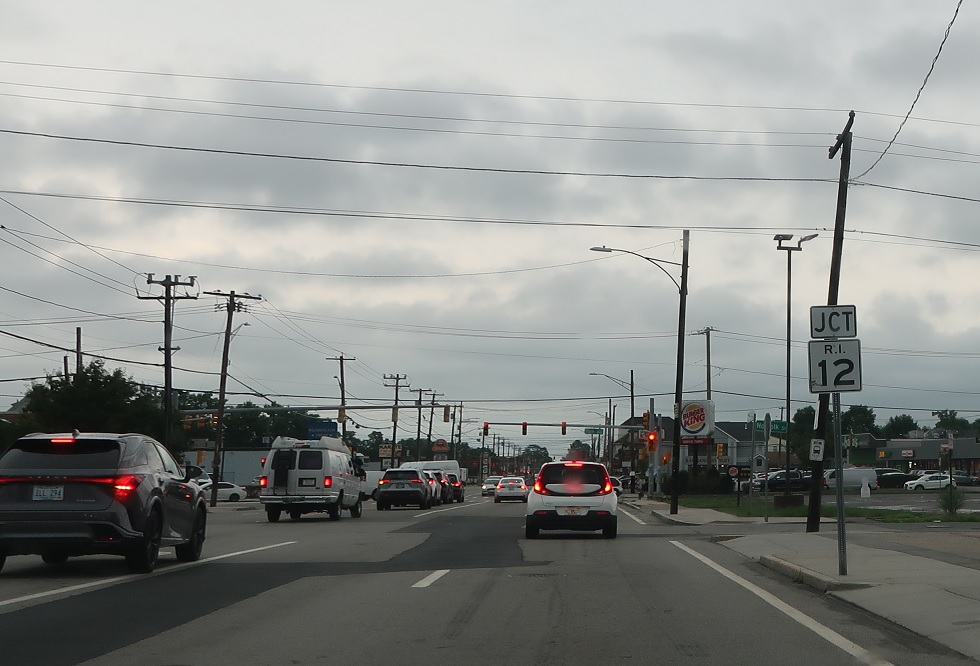 A bit under a mile later, RI 2 will be reduced to a common stroad as we approach RI 12. Turn left for 12 west and right for 12 east. Stay straight to stay on 2 north.