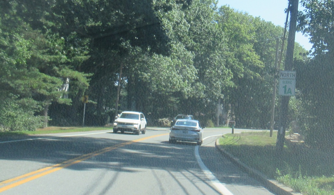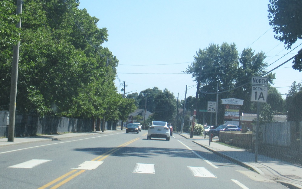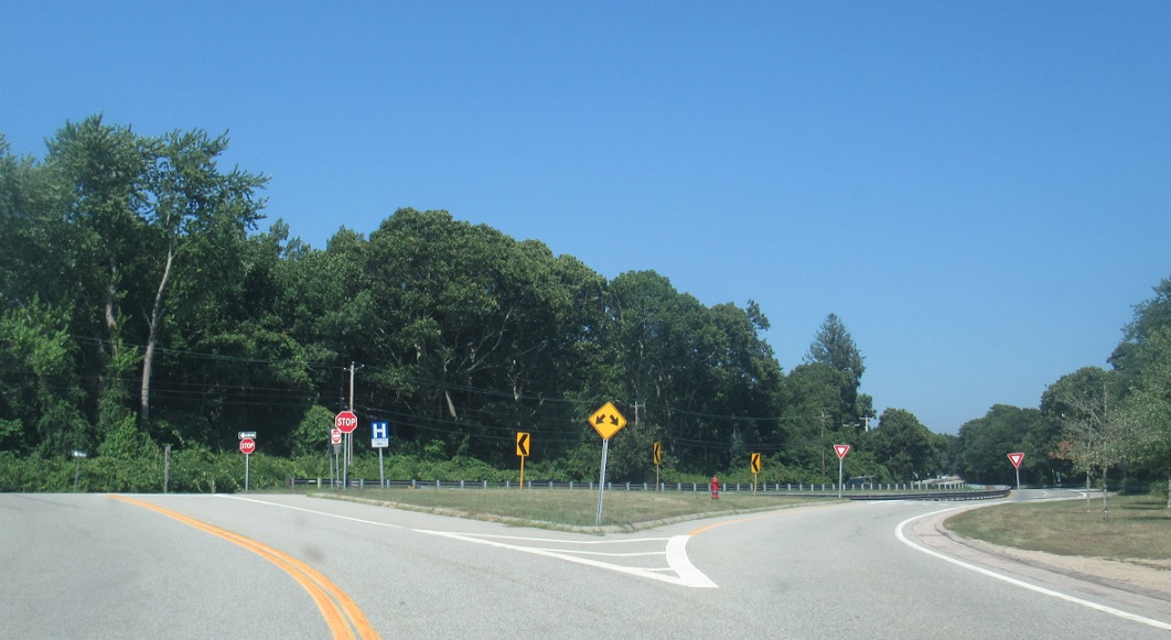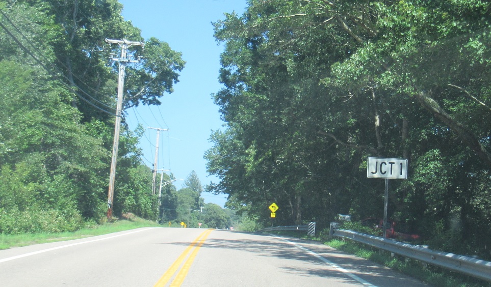 Keep right for US 1 north. Go to the stop sign and turn left for US 1 south. This segment of RI 1A ends.