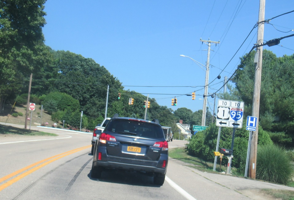 Follow Winnapaug Rd to US 1 and I-95. This is a false friend – stay straight to stay on 1A north.