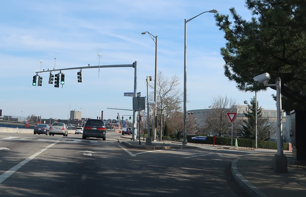Just after the ramp, at Broadway, US 1 makes an unsigned right turn.