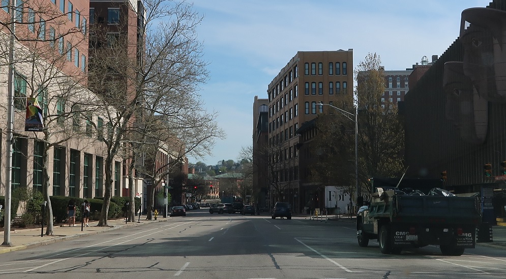 After turning onto Broadway, we’ll bump into another one-way couplet. Keep right to stay on 1 north.