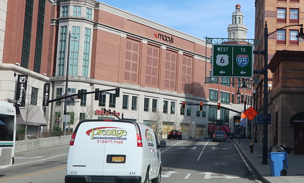A few blocks later, at Francis St, turn left to stay on US 1 north to I-95 and US 6/RI 10.